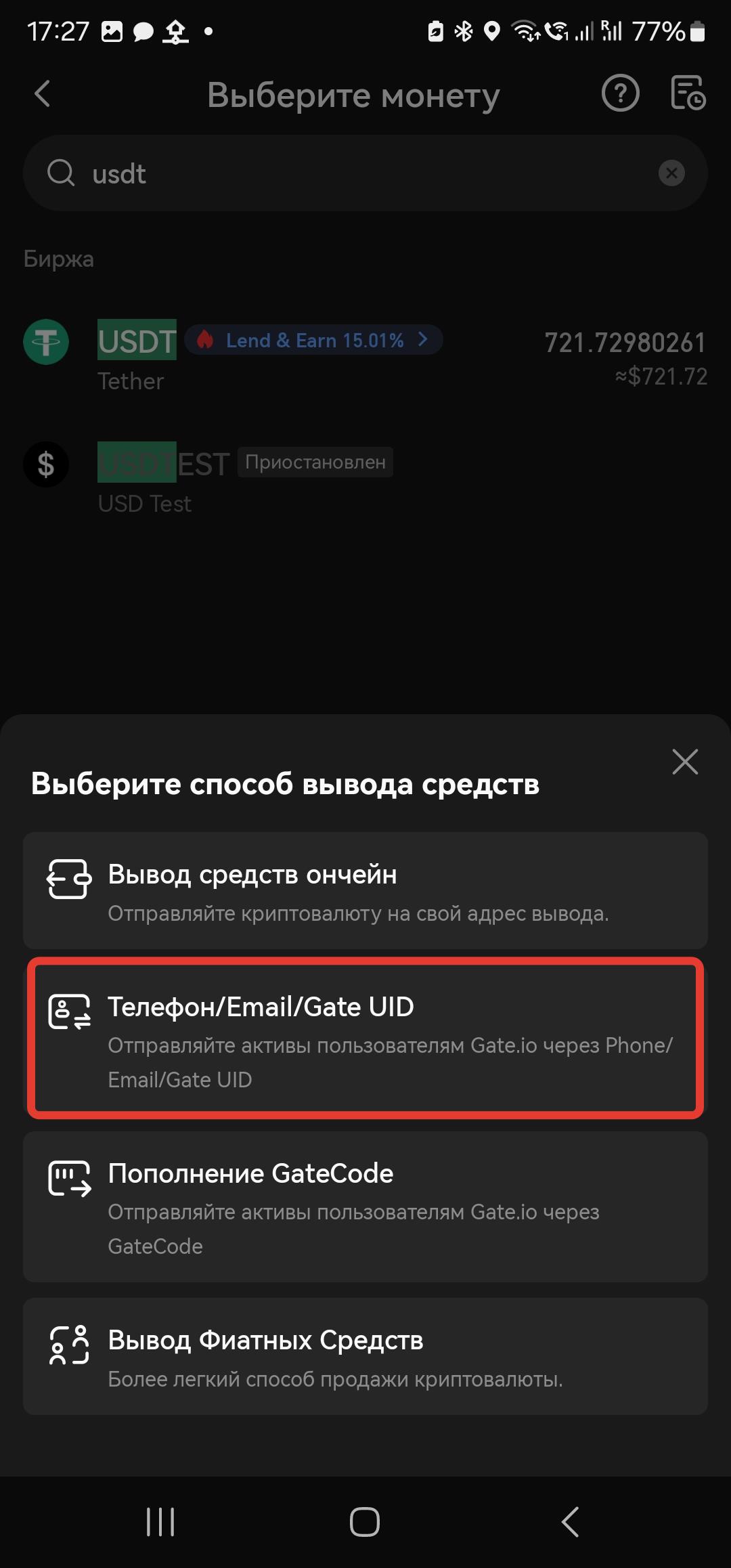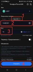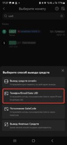Во всплывающем окне выбираем способ перевода ТЕЛФОН/EMAIL/GATE UID