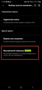 Выбираем ВНУТРЕННИЙ ПЕРЕВОД